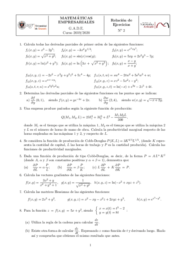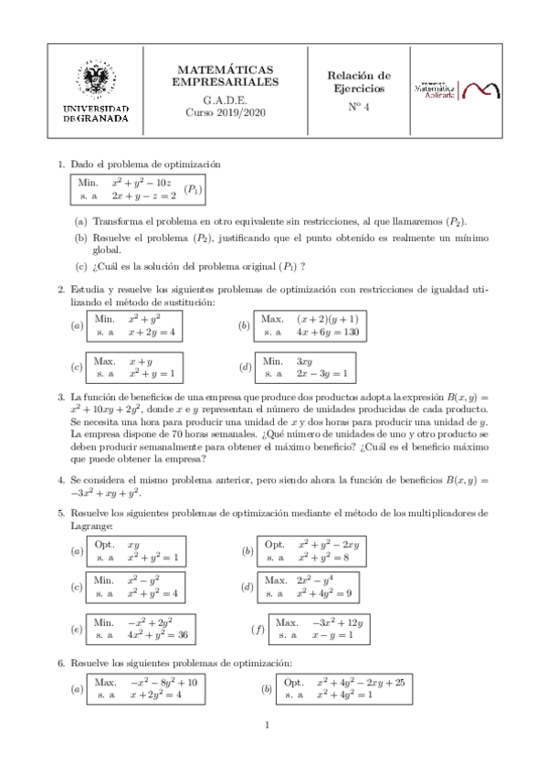 He publicado nuevos apuntes de 1º Matemáticas Empresariales: Relaciones de ejercicios con soluciones