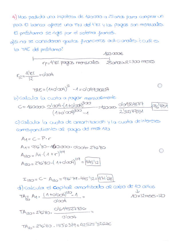 He publicado nuevos ejercicios de 2º Matemáticas Financieras: Corrección ejer. tema 4