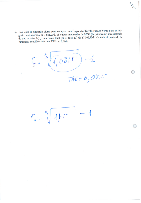 He publicado nuevos ejercicios de 2º Matemáticas Financieras: Corrección ejer. tema 2