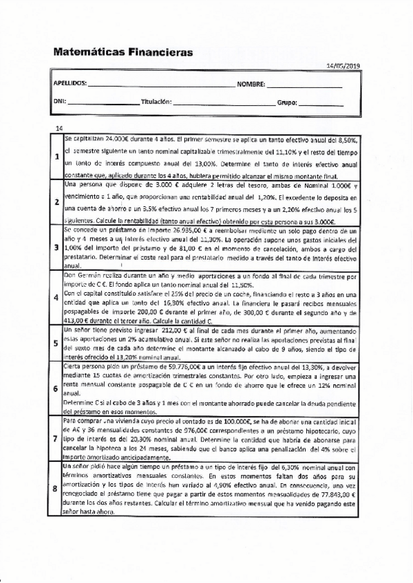 He publicado nuevos examenes de 1º Matemáticas Financieras: examen 12 mayo 2014.pdf