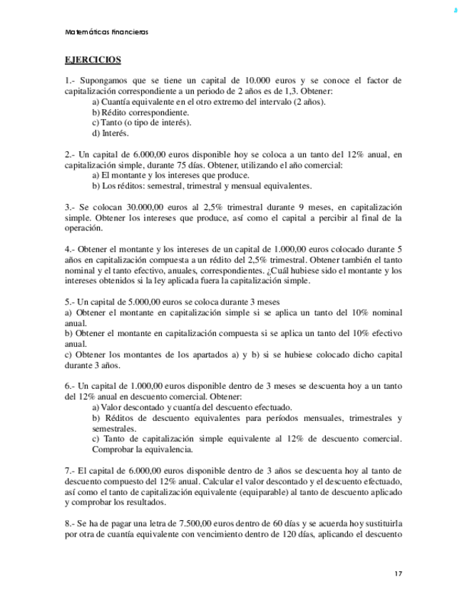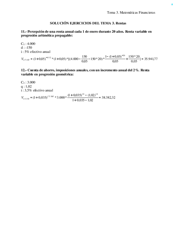 He publicado nuevos ejercicios de 2º Matemáticas Financieras: Ejercicios resueltos