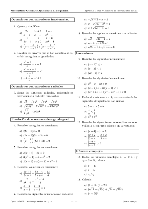 He publicado nuevos apuntes de 1º Matemáticas Generales Aplicadas a la Bioquímica: ejercicios t1.pdf