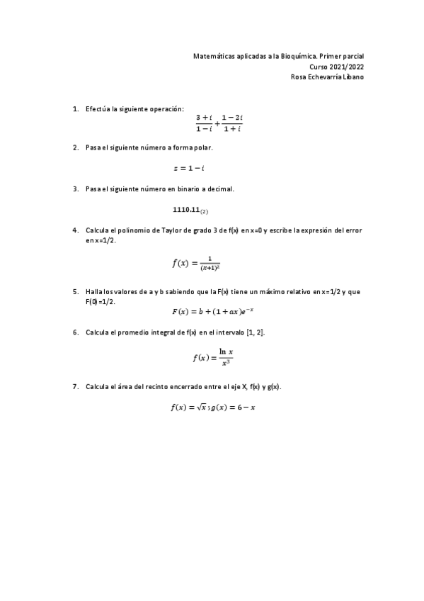 He publicado nuevos examenes de 1º Matemáticas Generales Aplicadas a la Bioquímica: Primer-Parcial-2021-2022.pdf