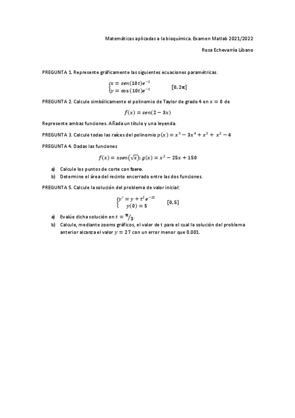 He publicado nuevos examenes de 1º Matemáticas Generales Aplicadas a la Bioquímica: Examen-Matlab.pdf