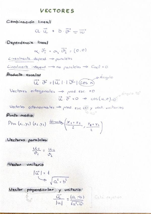 Apuntes explicados y resumen del contenido del punto 1 tema 5 sobre el espacio vectorial, todo lo que entra en la segunda nivelación.