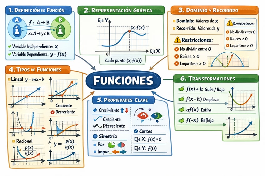 Cómo hallar el dominio de los distintos tipos de funciones, límites en un punto, límites en el infinito e indeterminaciones.