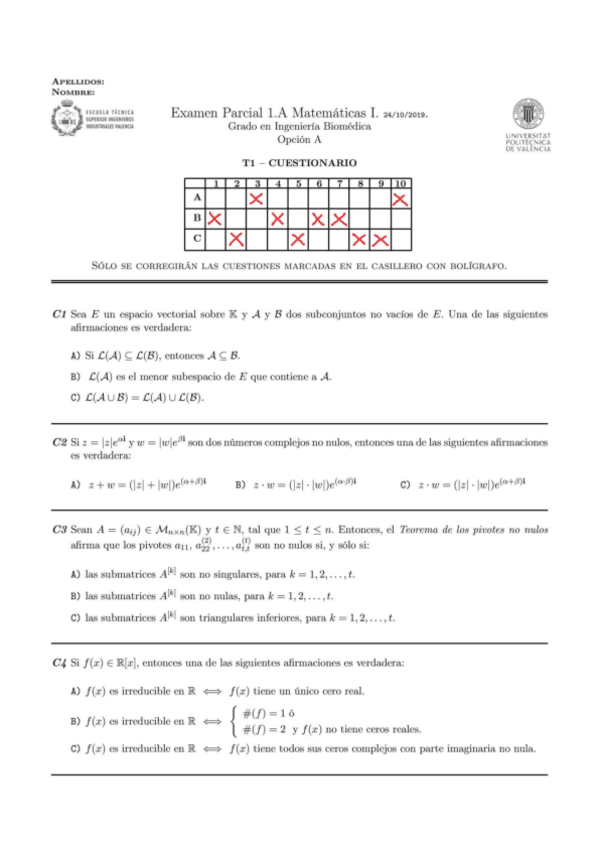 Exámenes Parcial 1 con solución