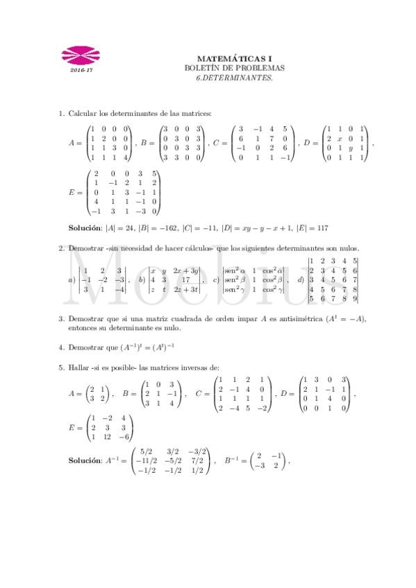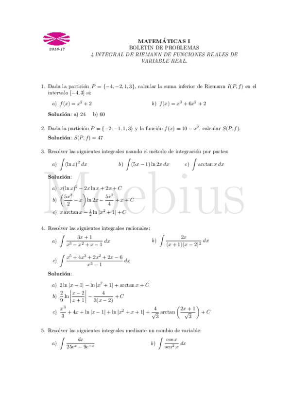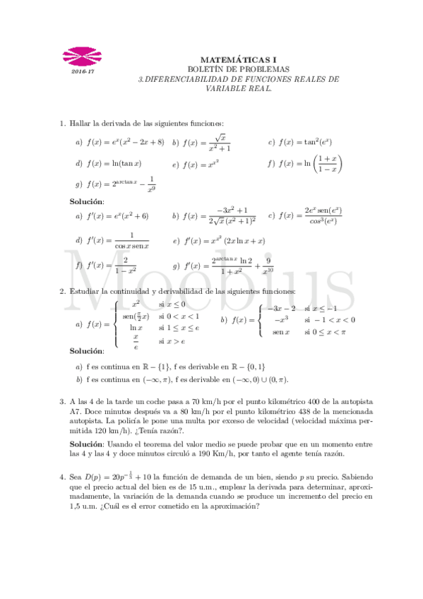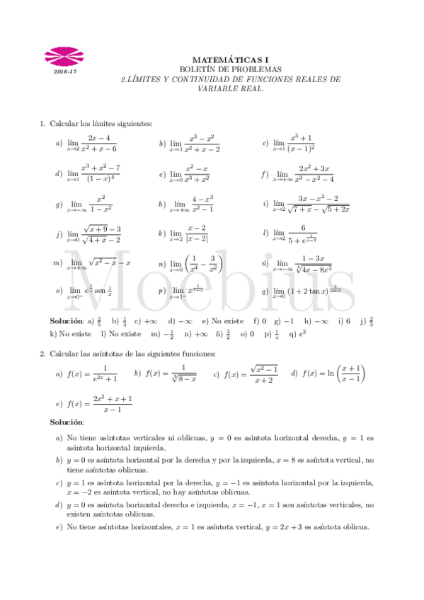 Todos los Boletines de Ejercicios Matemáticas I