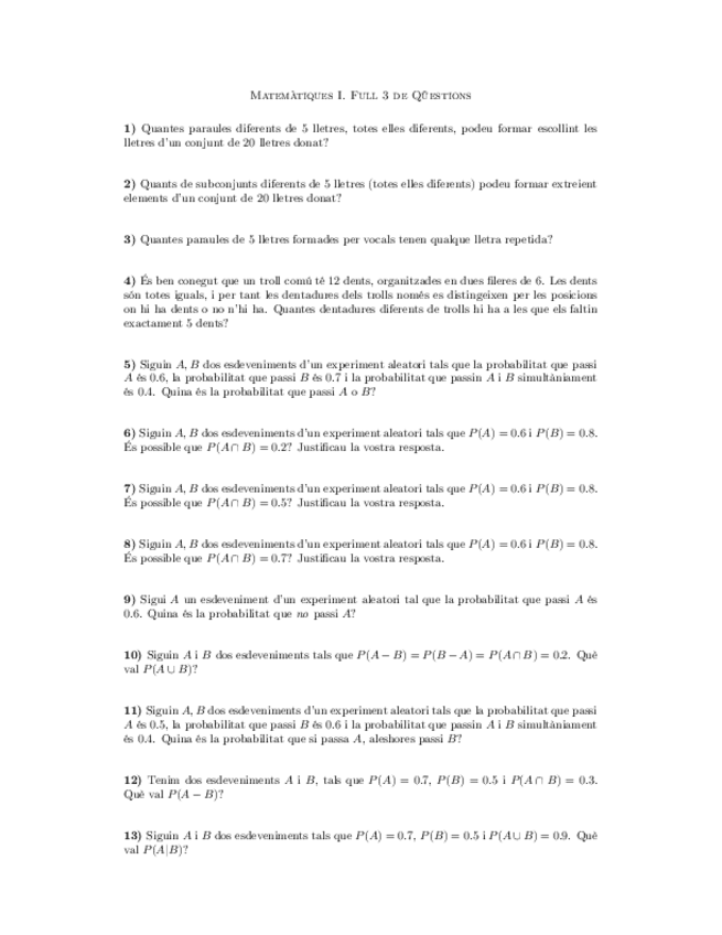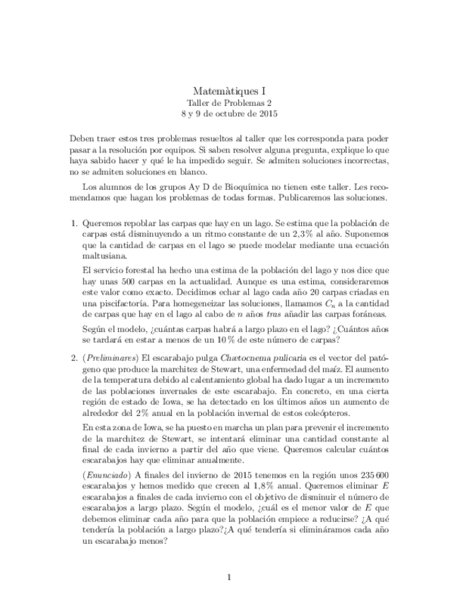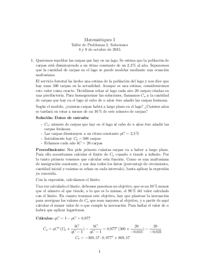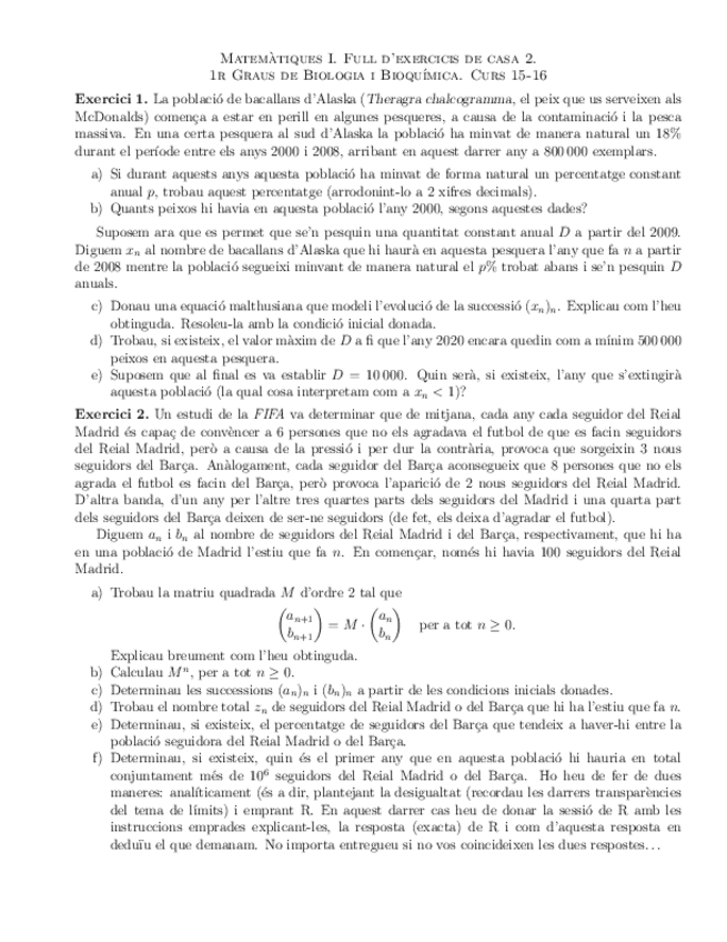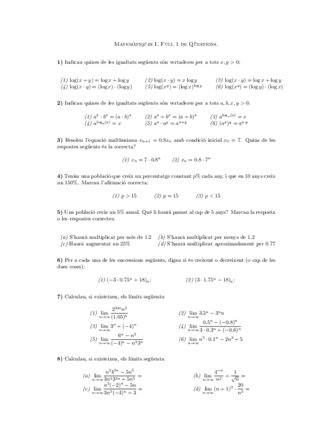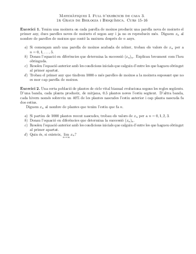 He publicado nuevos ejercicios de 1º Matemáticas I: Tallers 22-23 Primer Semestre