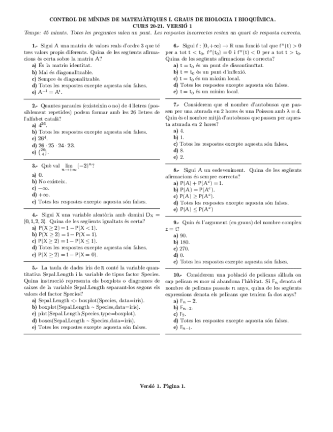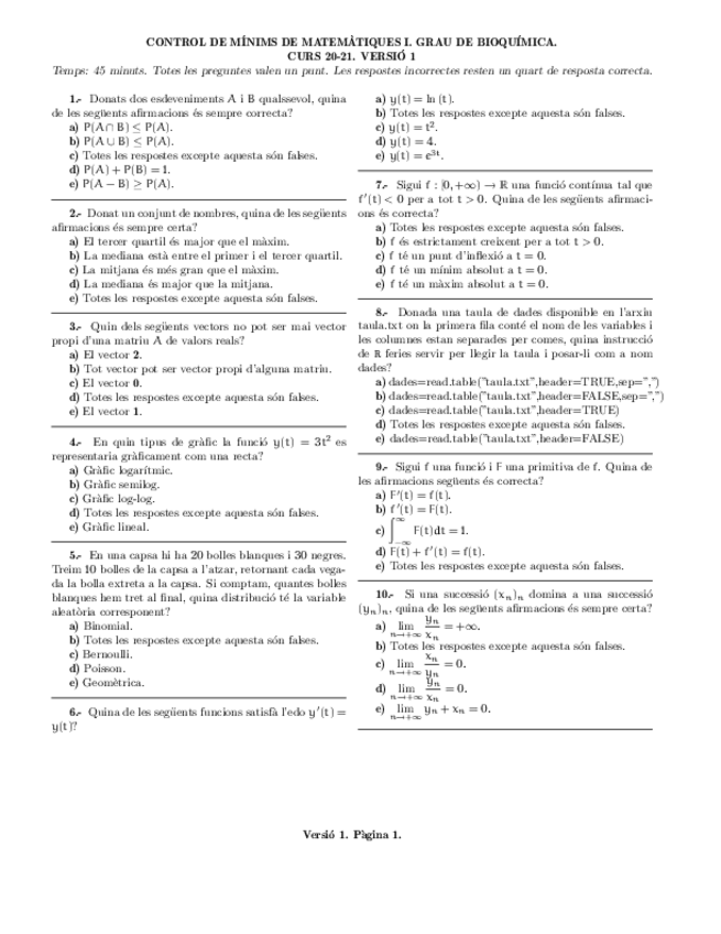 He publicado nuevos examenes de 1º Matemáticas I: Exàmens i Control Mínims 20-21