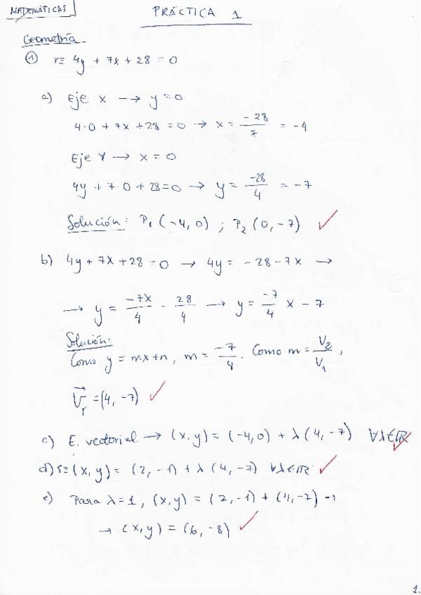TODOS los ejercicios resueltos de la práctica 1 de matemáticas. Geometría, sistemas de ecuaciones lineales, matrices.
