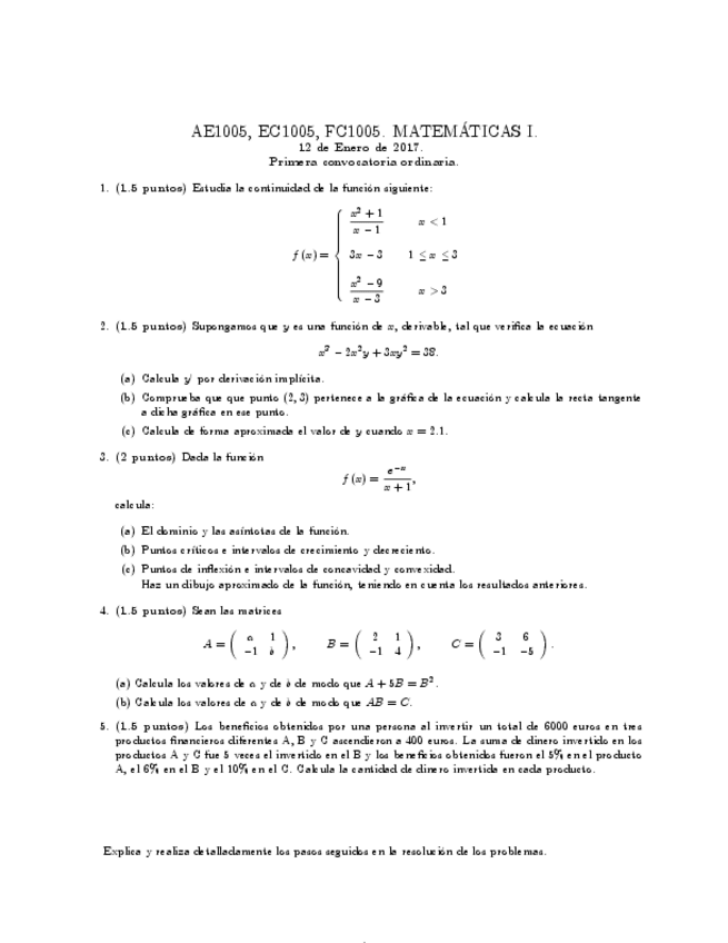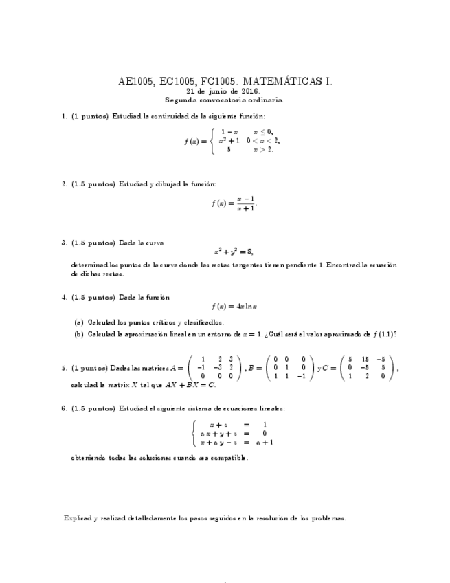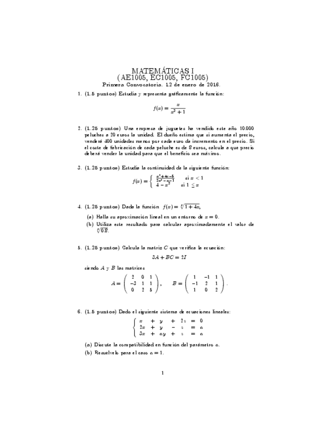 He publicado nuevos examenes de 1º Matemáticas I: examen 2016