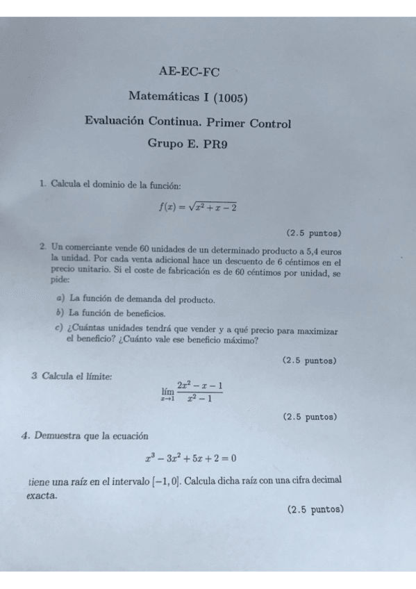 He publicado nuevos examenes de 1º Matemáticas I: Examen Mates I 2023.jpeg