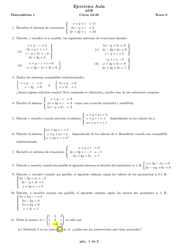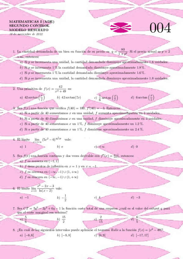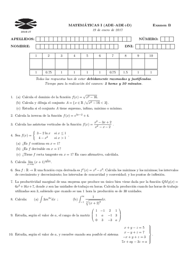 Exámenes Matemáticas I