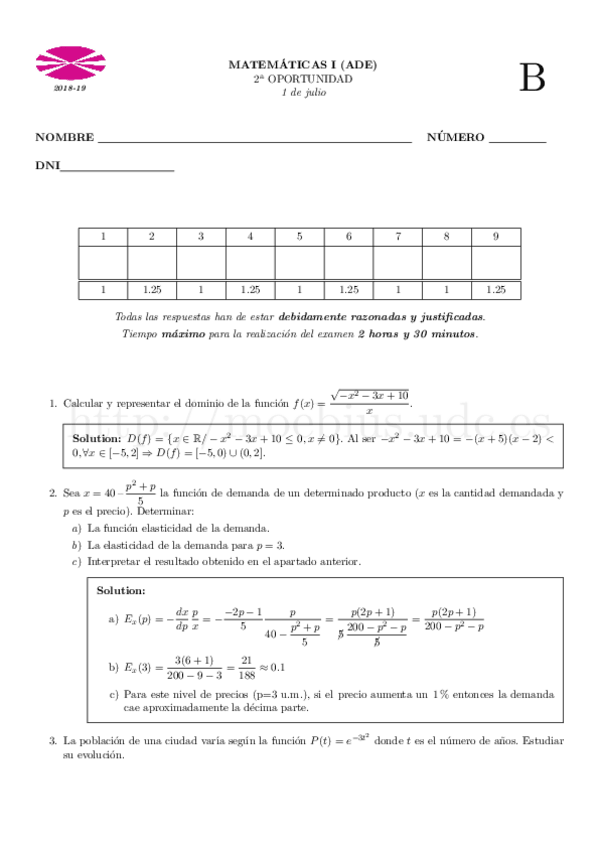 He publicado nuevos examenes de 1º Matemáticas I: ADE18-19-ver-definitivades.pdf