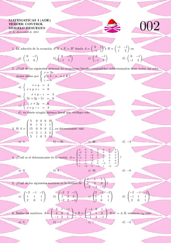He publicado nuevos examenes de 1º Matemáticas I: Examen resuelto