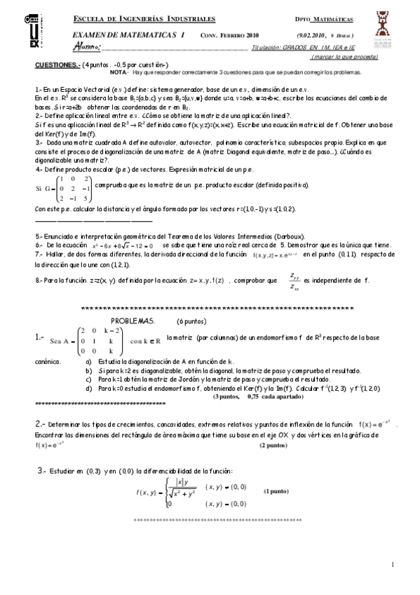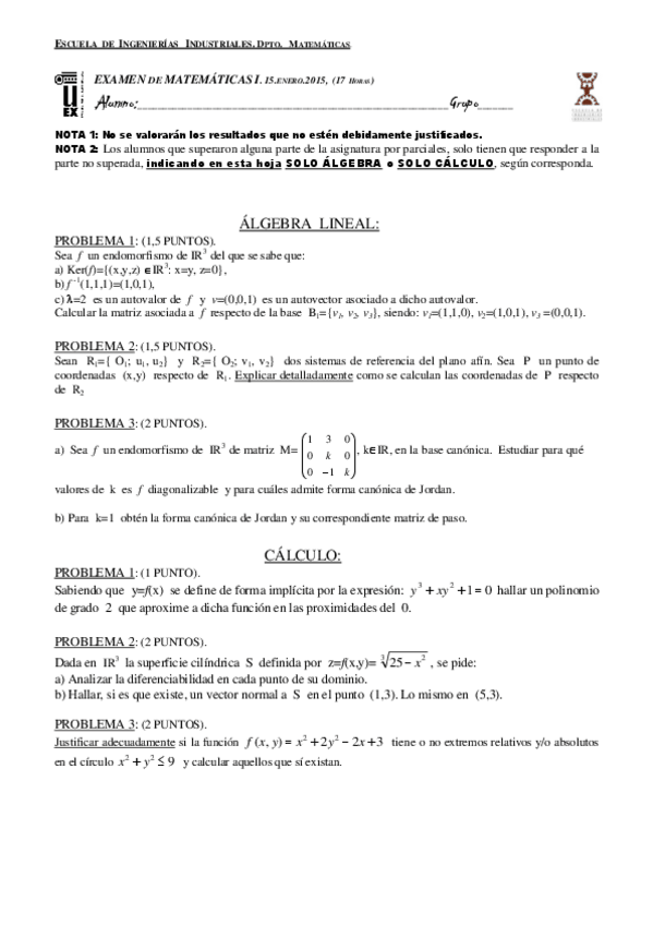 He publicado nuevos examenes de 1º Matemáticas I: Examenes