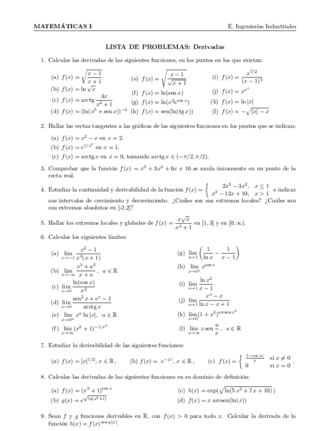 He publicado nuevos ejercicios de 1º Matemáticas I: Prob-Deriv-19-20.pdf