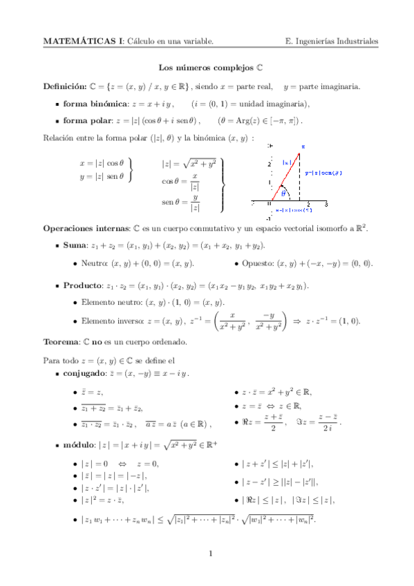 He publicado nuevos apuntes de 1º Matemáticas I: Tema 2. Números complejos..pdf