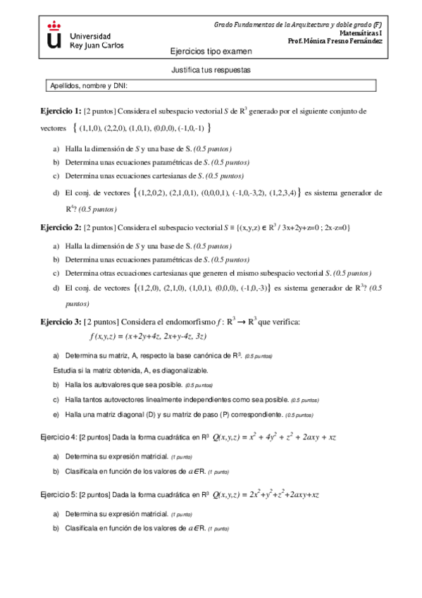 EXÁMENES MATEMÁTICAS I