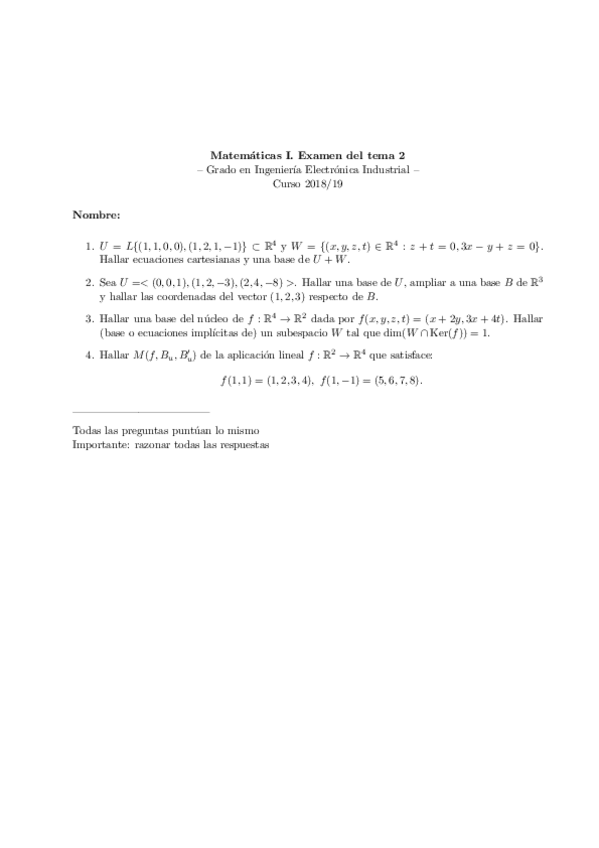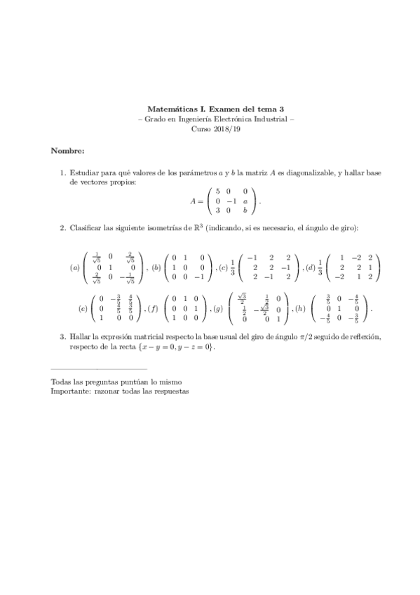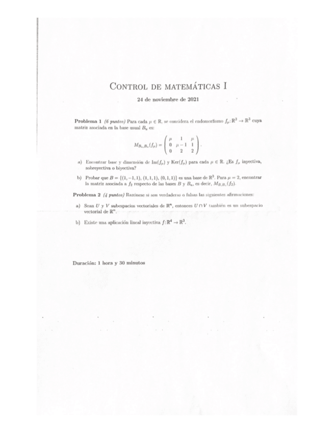 Examen Mates I 20 Enero 2025