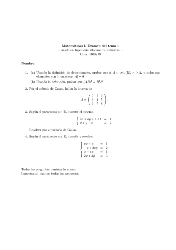 *INICIO DE CURSO MATEMÁTICAS I GRADO INGENIERÍA ELECTRÓNICA INDUSTRIAL* Clases modalidad online y presencial. Todas tus CLASES GRABADAS. Resolución de todos tus ejercicios y exámenes de convocatorias anteriores. Profesores especialidados en cada materia. ¡Ven a dar una clase de prueba en grupo con nosotros!