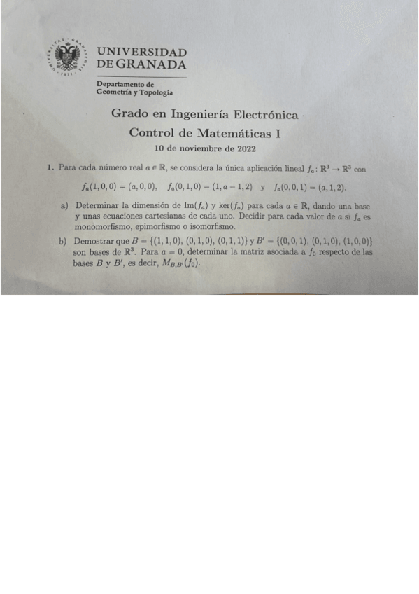 INICIO DE CURSO MATEMÁTICAS I GRADO EN INGENIERÍA ELECTRÓNICA. Academia Universitaria. Clases en grupos reducidos y particulares. Clases presenciales y online. Resolución de todos tus ejercicios y exámenes anteriores. UNIVERSIDAD DE GRANADA.
