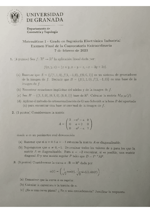 Examen Extraordinario 2022-2023 Matemáticas I