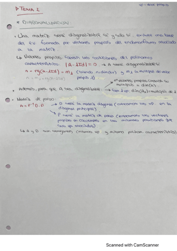 podéis subir algo de diagonalización de matrices???