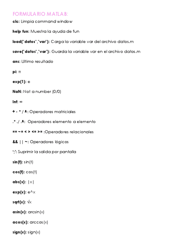 He publicado nuevos apuntes de 1º Matemáticas I: Apuntes-Matlab-Mates-I.pdf