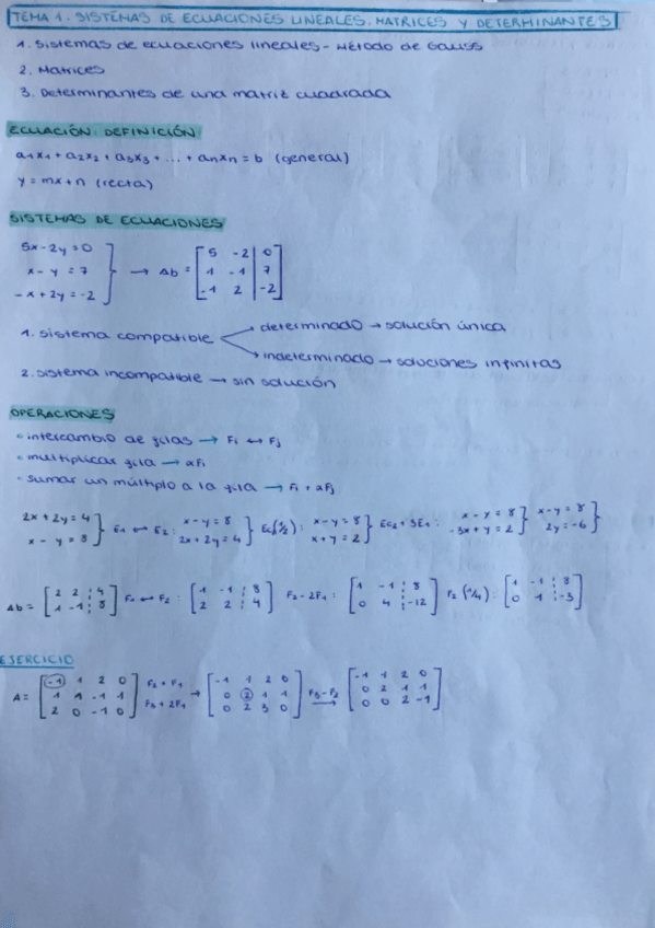 Apuntes Tema 1. Matrices, determinantes y sistemas.