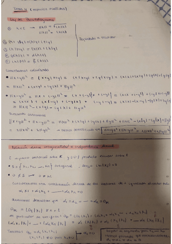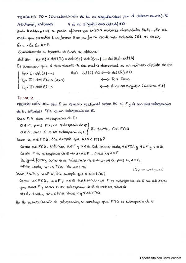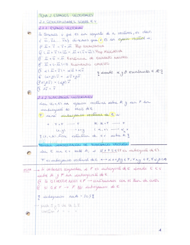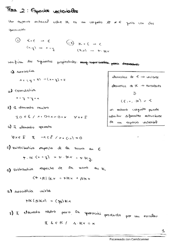 Apuntes escritos del tema 2 Espacios Vectoriales de Mates I
