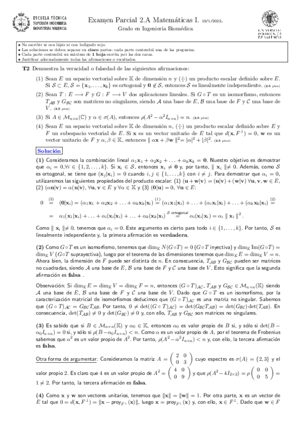 He publicado nuevos examenes de 1º Matemáticas I: Solucion 2Parcial 2022