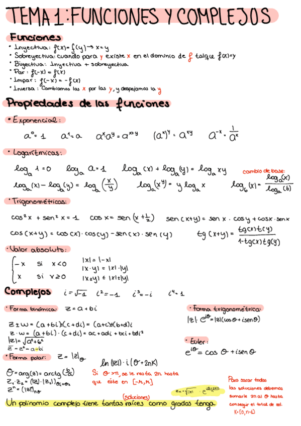Tema 1: funciones y complejos Tema 2: límites y continuidad Tema 3: derivadas Tema 4: integrales