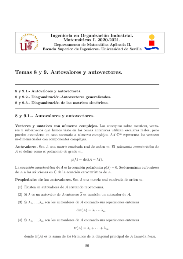 Apuntes del tema de autovectores y autovalores. Tambié incluye multiplicidad y matrices diagonalizables