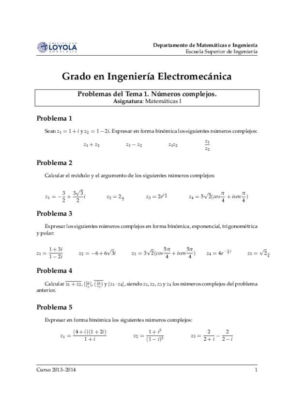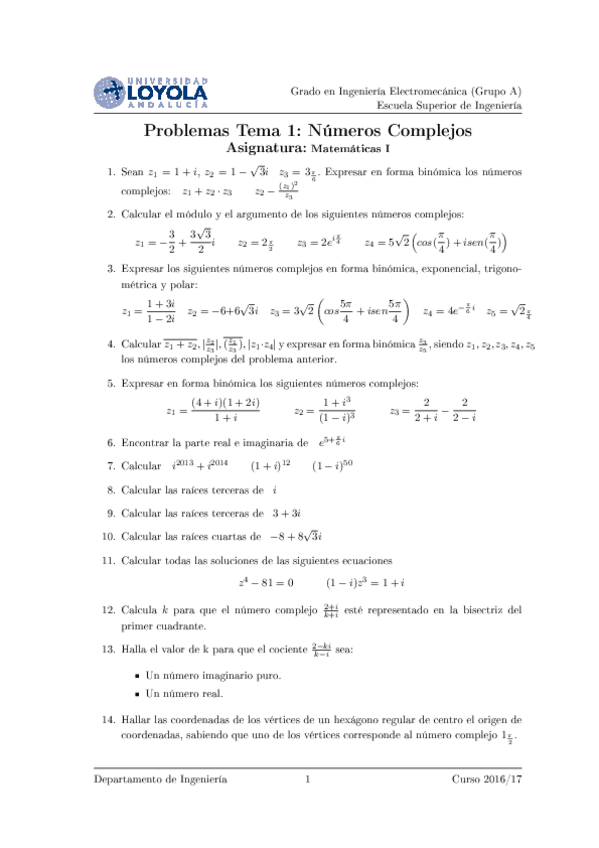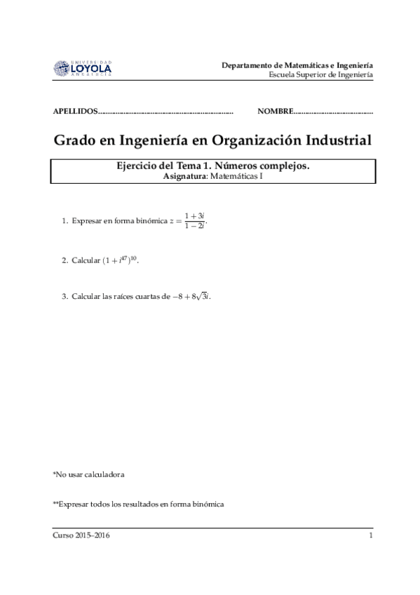 He publicado nuevos examenes de 1º Matemáticas I: examenTema1complejos.pdf