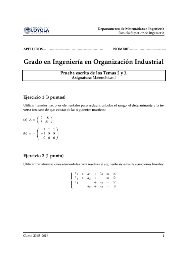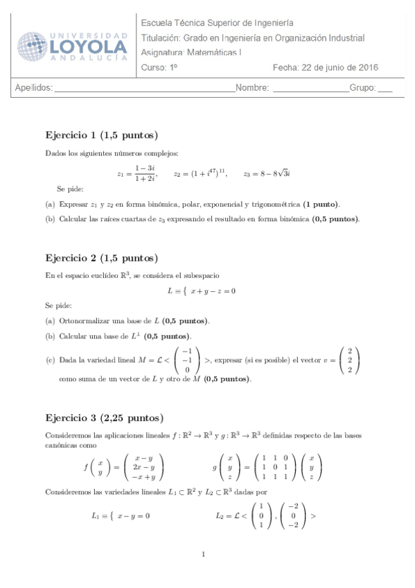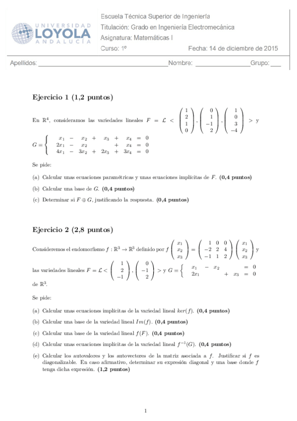 He publicado nuevos examenes de 1º Matemáticas I: examen diciembre 2.pdf