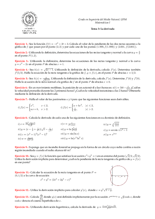 He publicado nuevos ejercicios de 1º Matemáticas I: Ejercicios-derivacion.pdf
