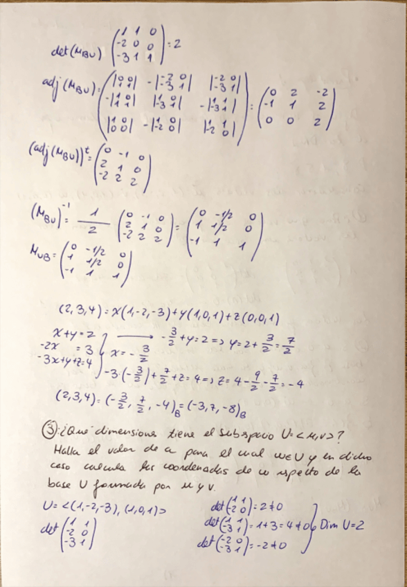 Parte del 1º Parcial en el examen final de Matemáticas I resuelto, con los enunciados de todos los ejercicios encima de la respectiva solución.