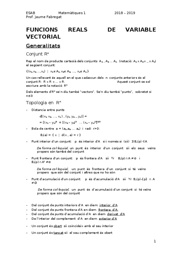 He publicado nuevos apuntes de 1º Matemáticas I: FRVV (funció real de variable vectorial)