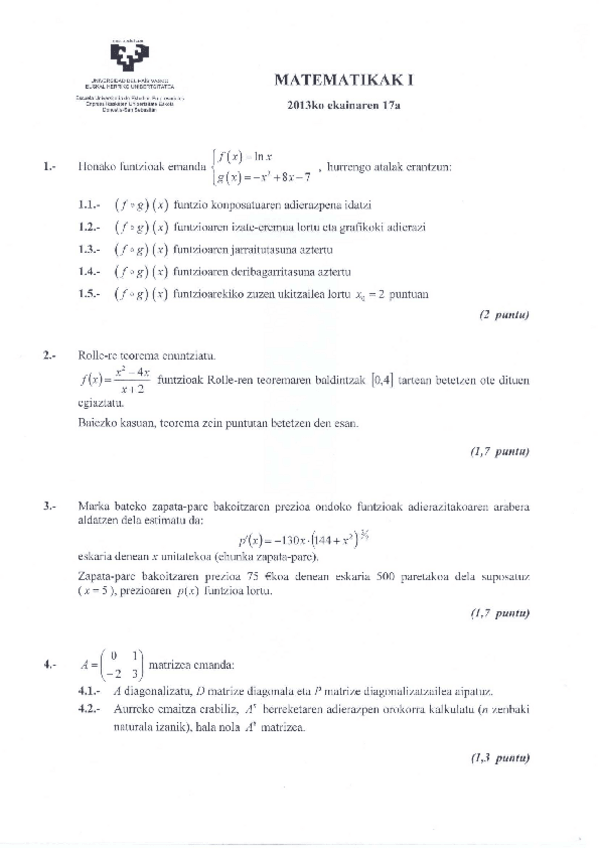 Matematika I - Azterketa ebatziak