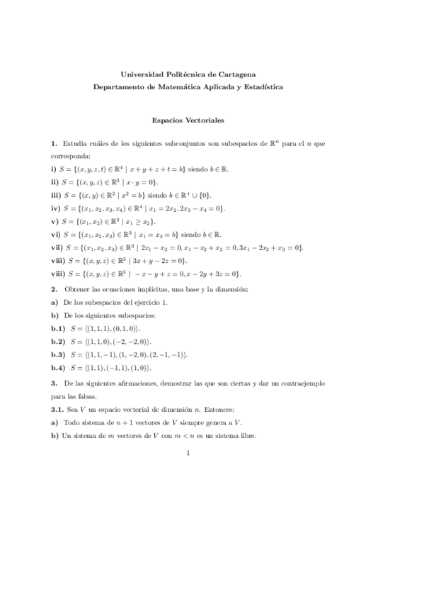 He publicado nuevos ejercicios de 1º Matemáticas I: Ejemplos. Espacios vectoriales