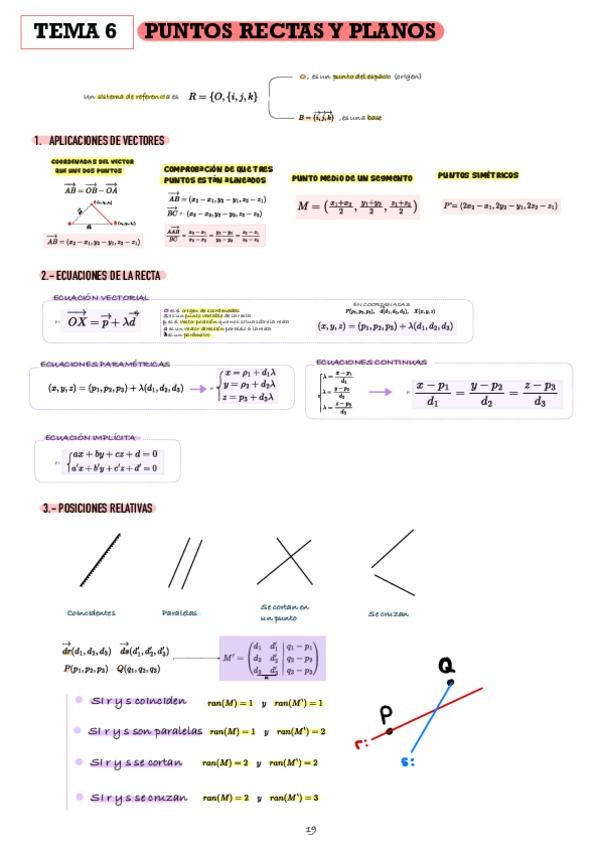 Resumen de las posiciones relativas del tema de Geometría.
