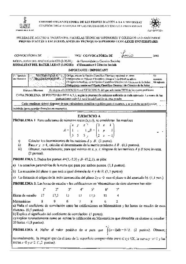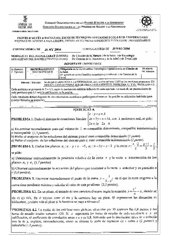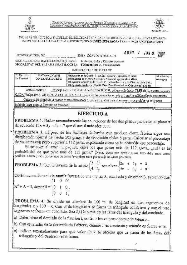 He publicado nuevos examenes de Matemáticas II: exámenes pau