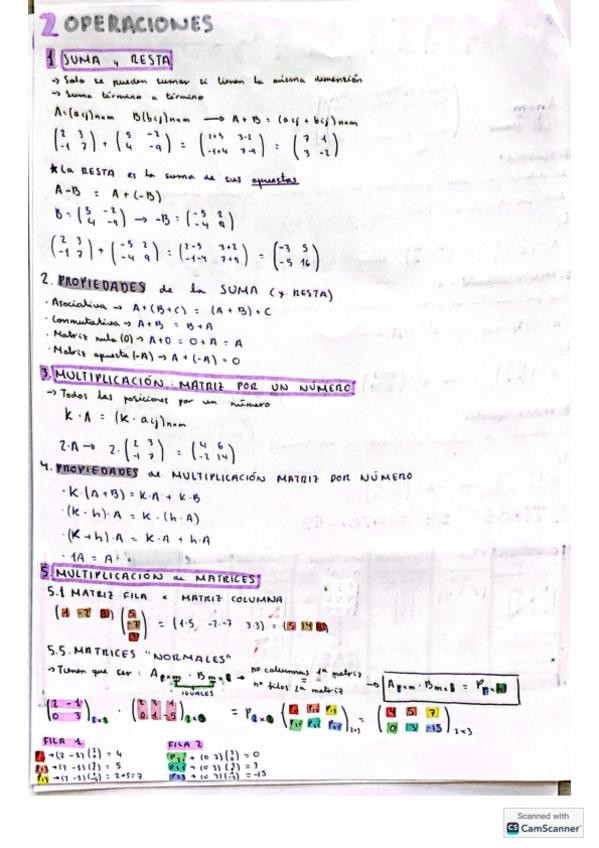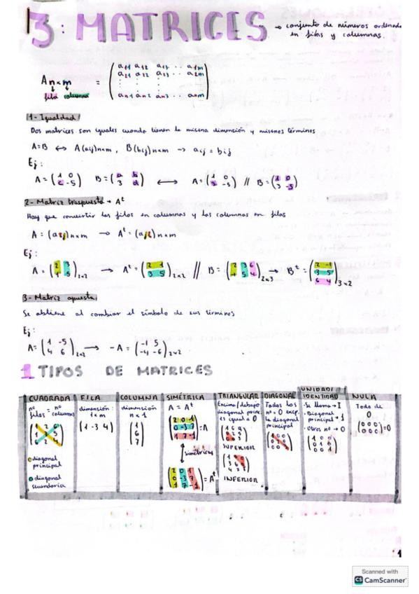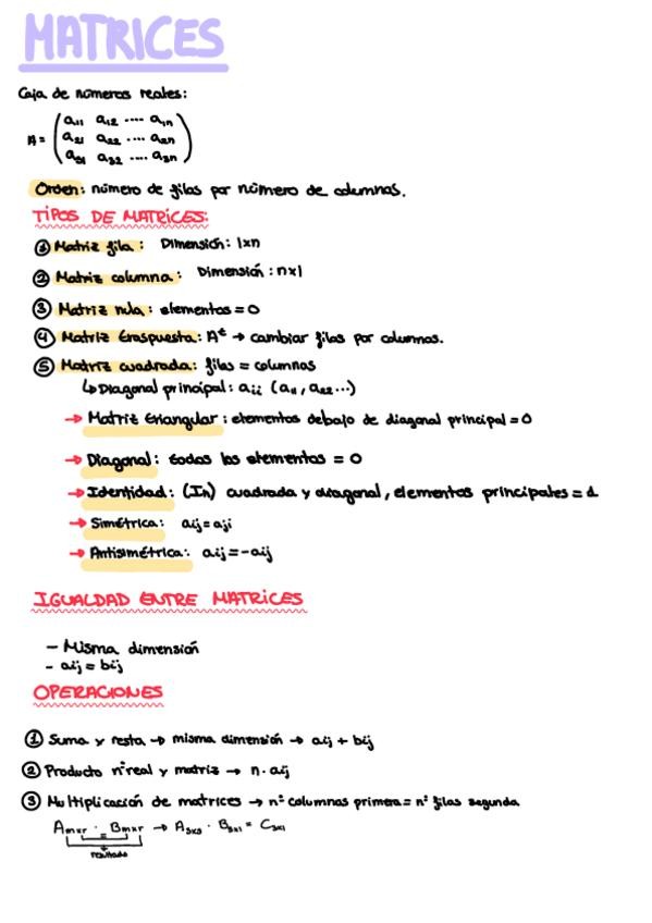 Apuntes completos sobre matrices y determinantes de matemáticas II ciencias