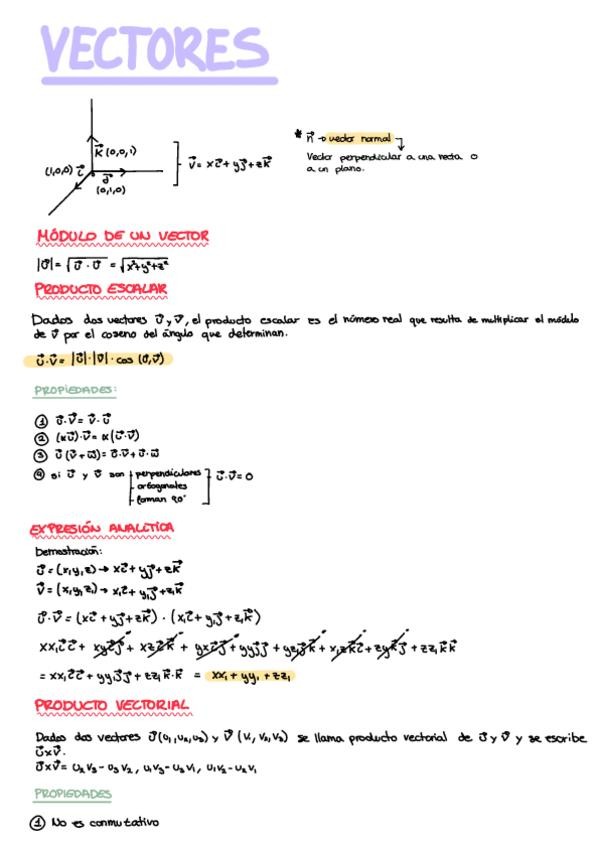 Vectores y geometría analítica, apuntes completos de matemáticas II ciencias, muy importante para PAU