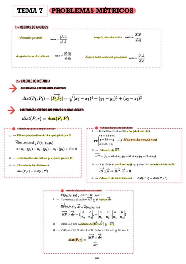 Tema 7 Problemas métricos (Comunidad Valenciana) -Cálculo de ángulos, distancias y áreas/volúmenes