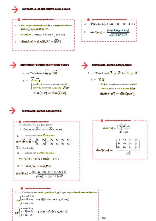 Resumen 100% completo de la teoría de Geometría en el espacio de 2º bachillerato. Los apuntes están divididos en 4 secciones: - Vectores - Rectas y planos - Posiciones relativas - Distancias, ángulos y proyecciones