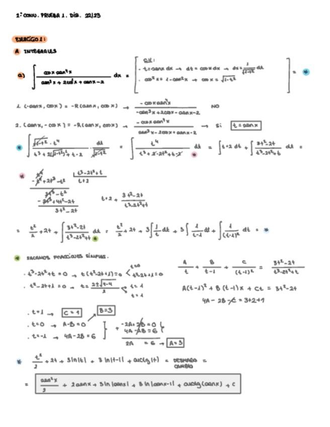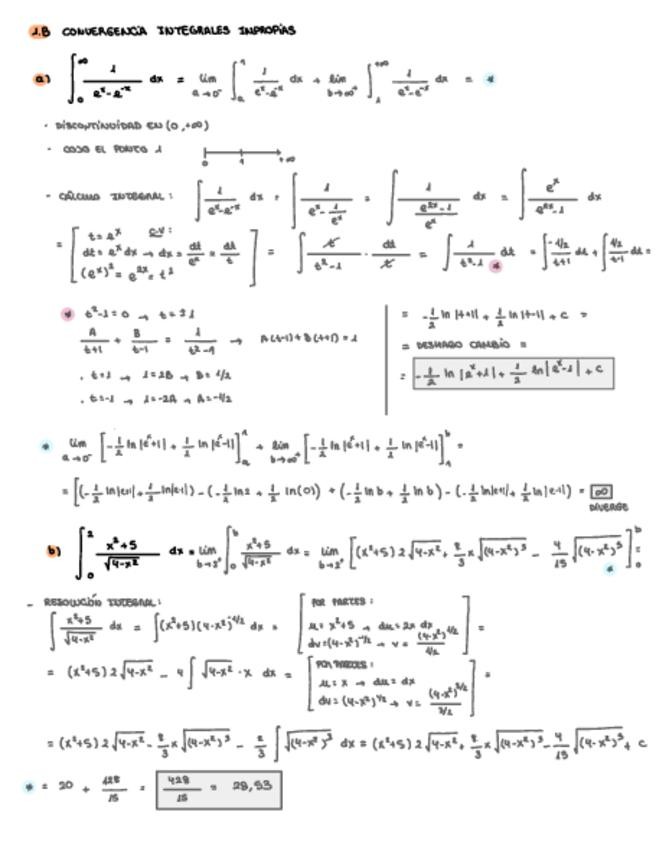 Libreta completa del bloque de análisis de Matemáticas II. Incluye integrales, estudio de una función, optimización, actividad de selectividad resueltas.