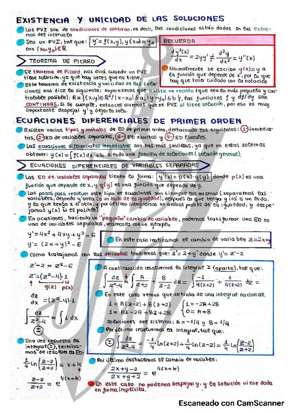 Todo el bloque de ecuaciones diferenciales con apuntes y ejercicios resueltos